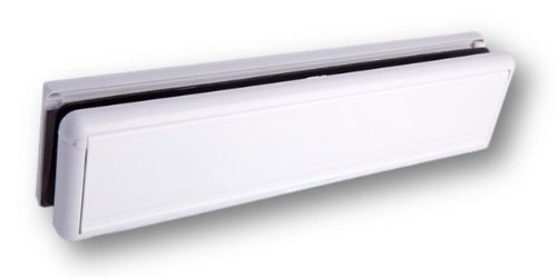 Paddock Trademaster 12 inch midrail fitting white letterbox with white surround for upvc doors. The flap is white in colour and the frame is white. The unit has telescopic sleeves and fits door widths between 40mm and 80mm. Draught protection is provided by twin internal nylon brush seals. (Postal advice: This item will probably not fit through your existing letterbox, consider sending to alternative delivery address if you may not be available to accept the delivery).